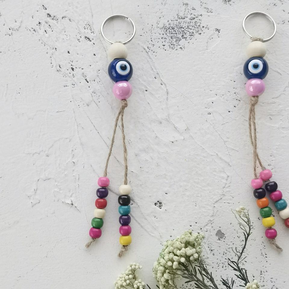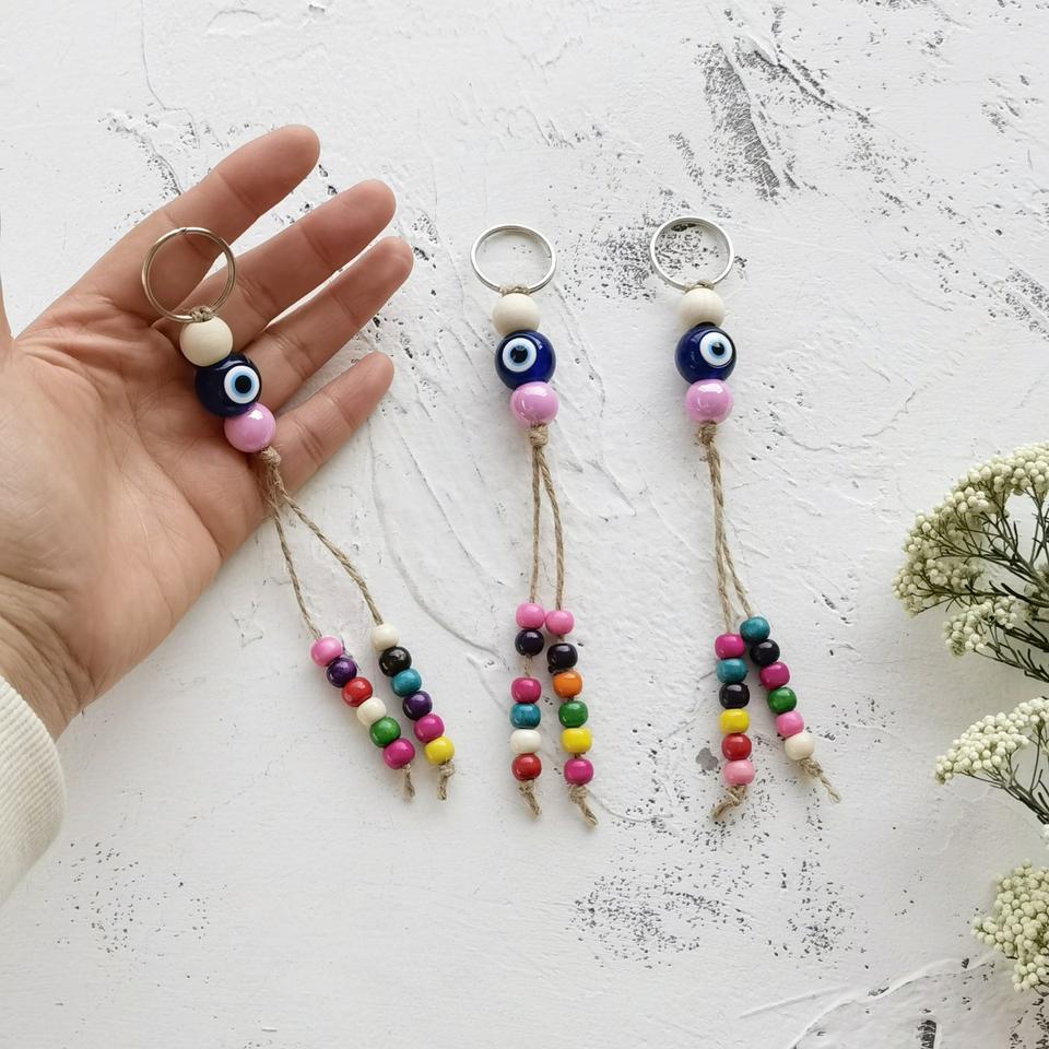 Porte-clés turc tissé contre le mauvais œil avec alliage de zinc écologique et perles colorées - Accessoire de sac et pendentif de décoration intérieure