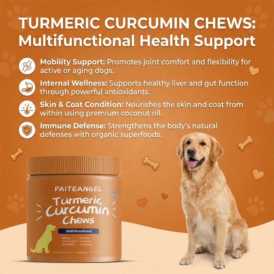 Complément alimentaire pour chien à base de curcuma et de curcumine avec BioPerine pour la mobilité des articulations, le soutien de la peau et du système immunitaire, vente en gros, OEM, étiquette privée