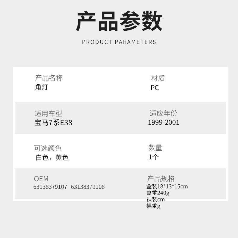 Clignotant pour BMW Série 7 E38 99-01, pièce de rechange en PC, L028