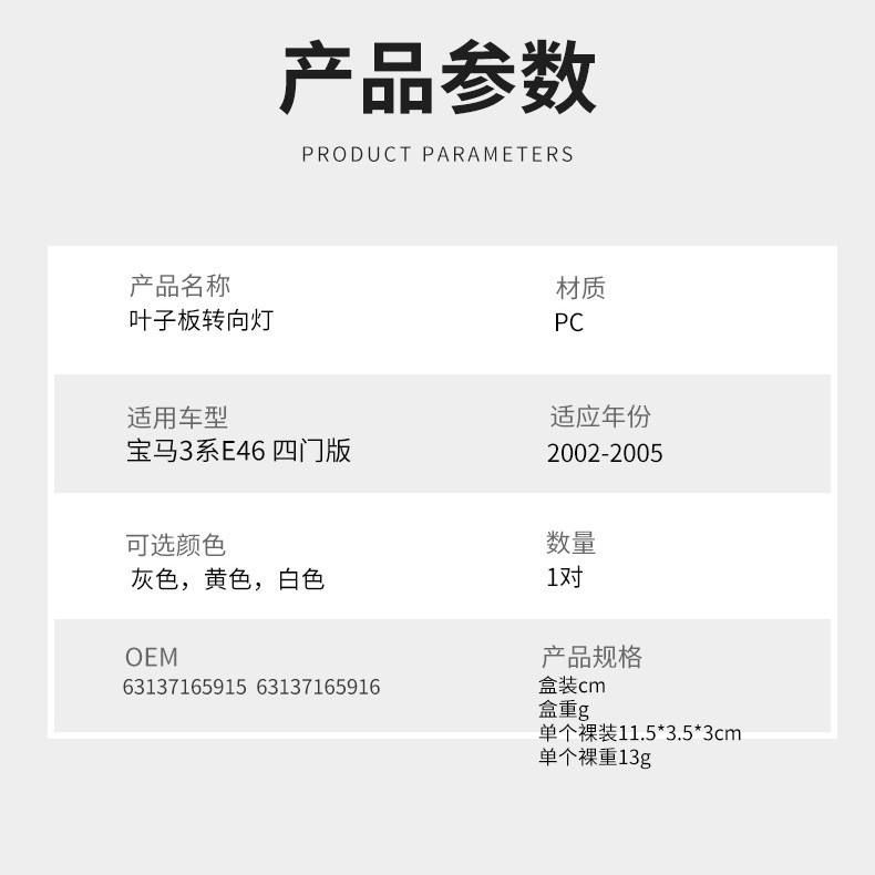Clignotants pour BMW Série 3 E46 2002-2005, feux latéraux jaunes en PC, pièce de rechange L080