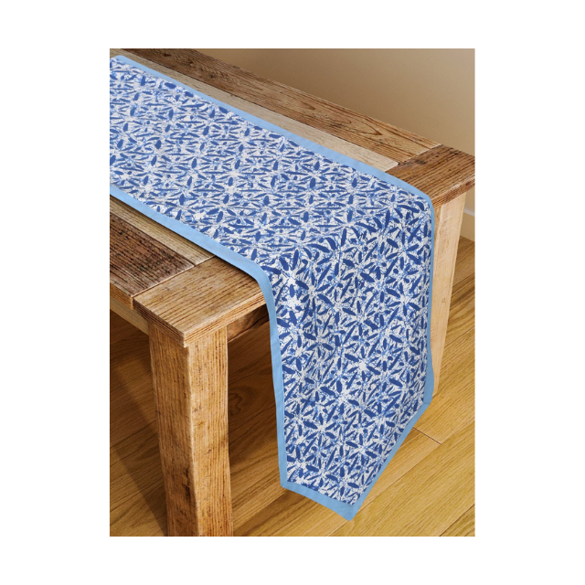 Chemin de table jacquard brodé Turn Tables Art 100% coton motif floral bleuâtre 120 GSM 72 pouces Inde certifié GOTS OEM DHL