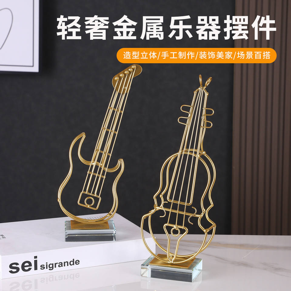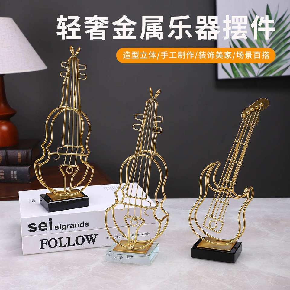 Ornement de violon en fer doré, style moderne et minimaliste, pour décoration intérieure et présentation en salle d'étude