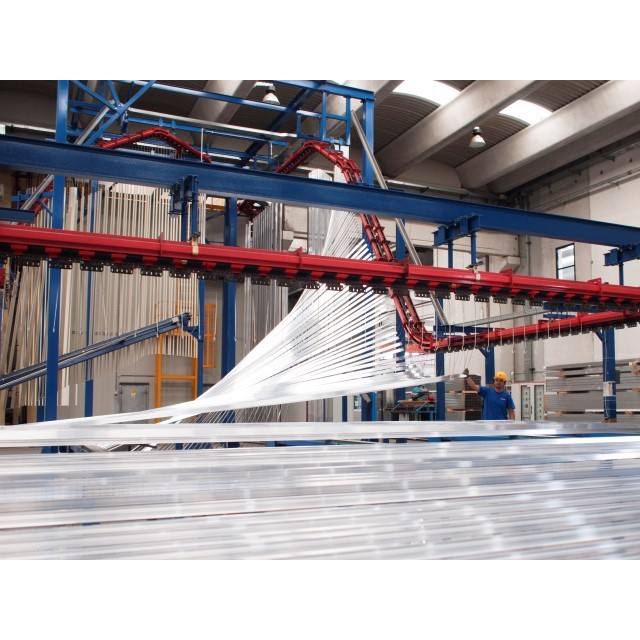Ligne de peinture en poudre automatique clé en main Trasmetal pour profilés verticaux en aluminium, équipement industriel italien