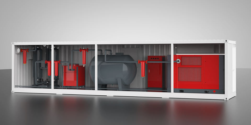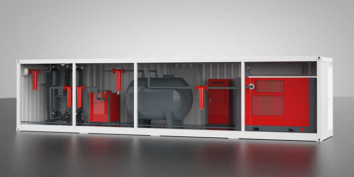Ensemble de compresseur d'air conteneurisé clé en main, comprend tous les tuyaux et équipements électriques, il suffit de brancher et de démarrer