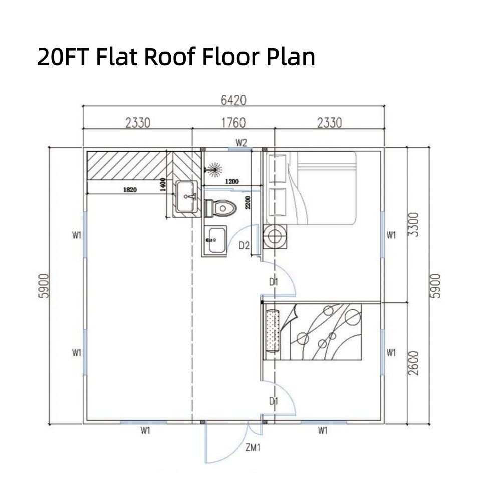 Toit plat de 20 pieds:5900*6360*2530mm/19,36*20,87*8,3 pieds