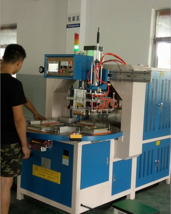 Machine de scellage et de découpe automatique à haute fréquence pour emballages à clapet, avec logo crocodile, emblème d'équipe de football, badge