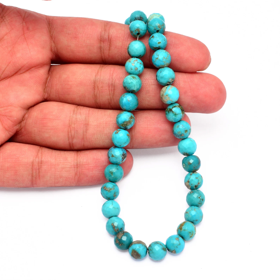 Perles rondes facettées turquoise de 7 mm à 8,50 mm, turquoise d'Arizona naturelle authentique, pierre semi-précieuse, perles en vrac pour bijoux