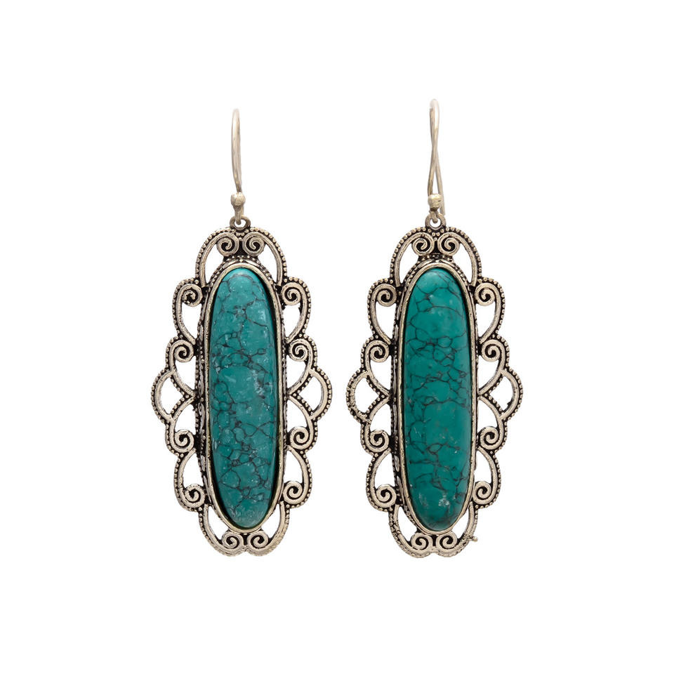 Boucles d'oreilles turquoises en laiton argenté de forme ovale, bijoux en vogue