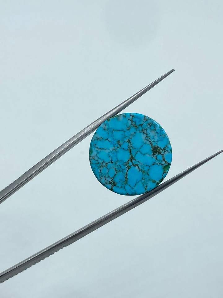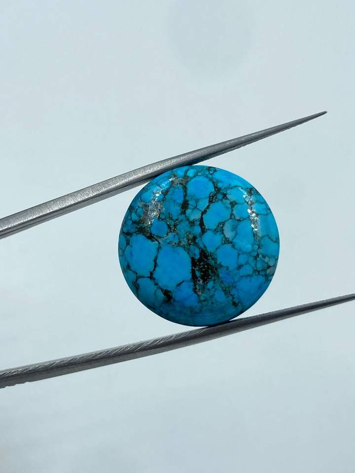 Pierre Turquoise Naturelle Taillée par un Designer, Collection Luxe, Pierre Libre 20.30mm 27.00 CTS Bleu Profond pour la Fabrication de Bijoux (Fabricant)