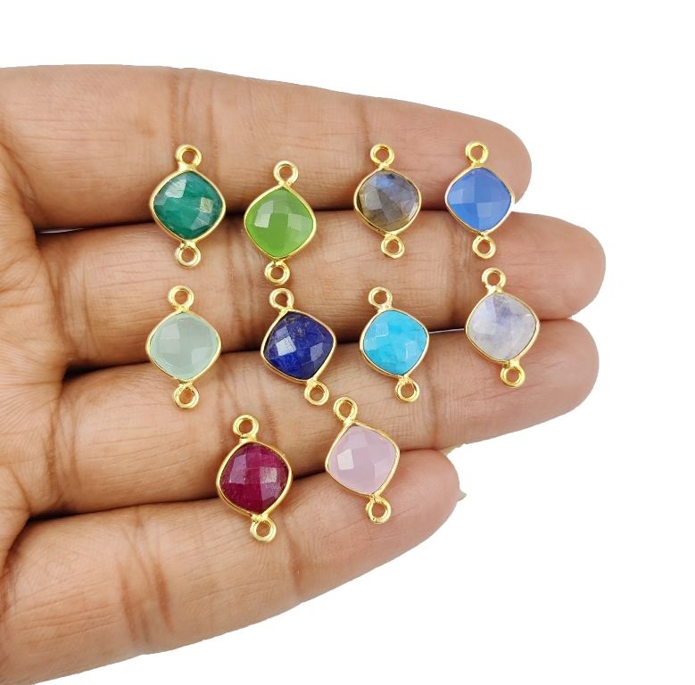 Ensemble de lunette de coussin en pierre précieuse Turquoise pierre de naissance or Vermeil connecteur en argent Sterling boucle d'oreille et collier fabrication de connecteurs