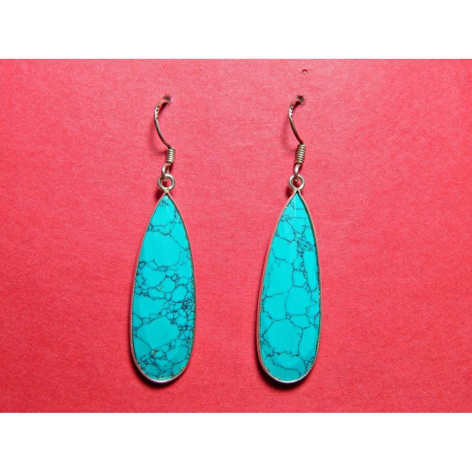 Turquoise Gemstone Earrings 925 Sterling Silver Handmade Rose Gold Gift for Her E0642-GS