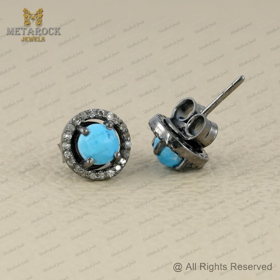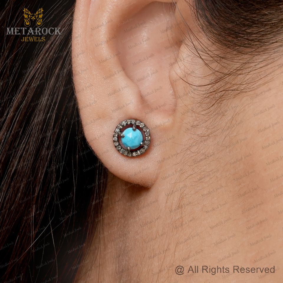 Earring Name:Diamond Turquoise Stud Earrings