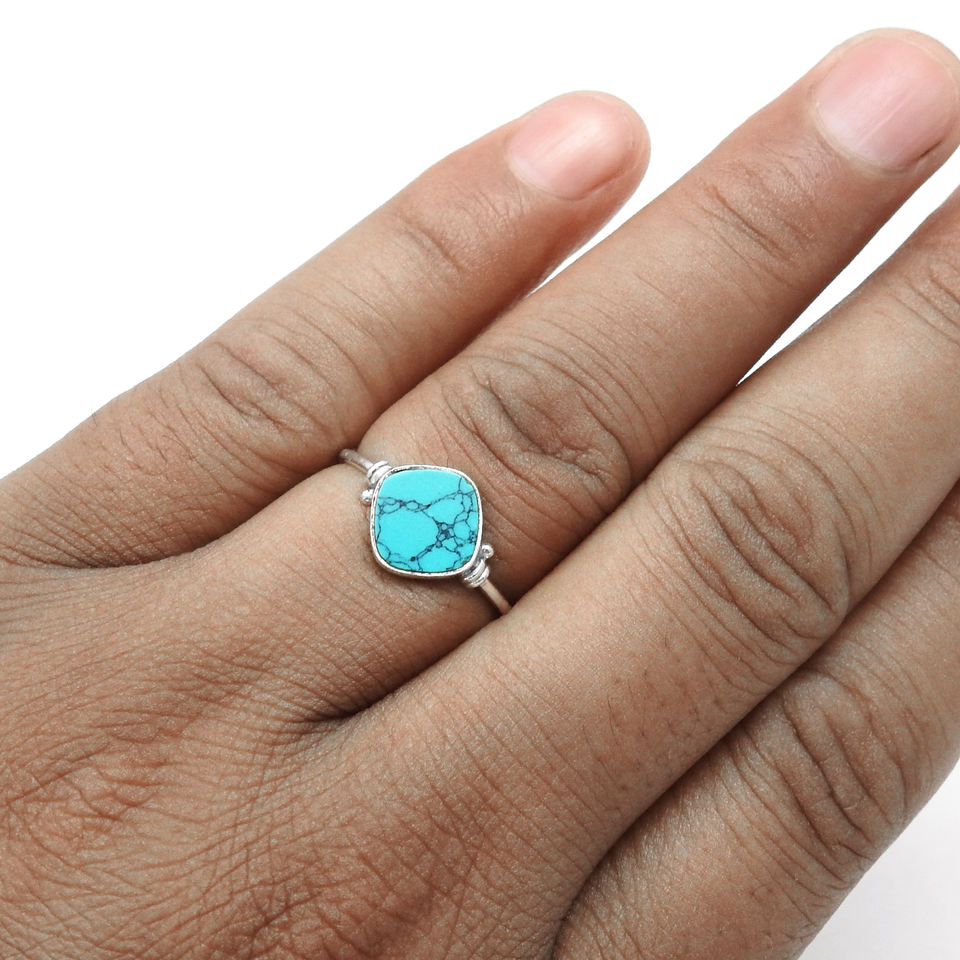 Haute qualité prix de gros 925 argent Sterling naturel Turquoise pierre précieuse coussin forme anneau décembre pierre de naissance bijoux inde