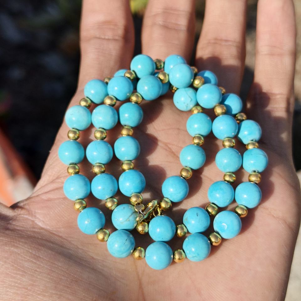 Collier ras du cou en argent sterling turquoise avec perles lisses de 8 mm, pierre précieuse bleue, bijoux, pierre de naissance de décembre, cadeau de mariage