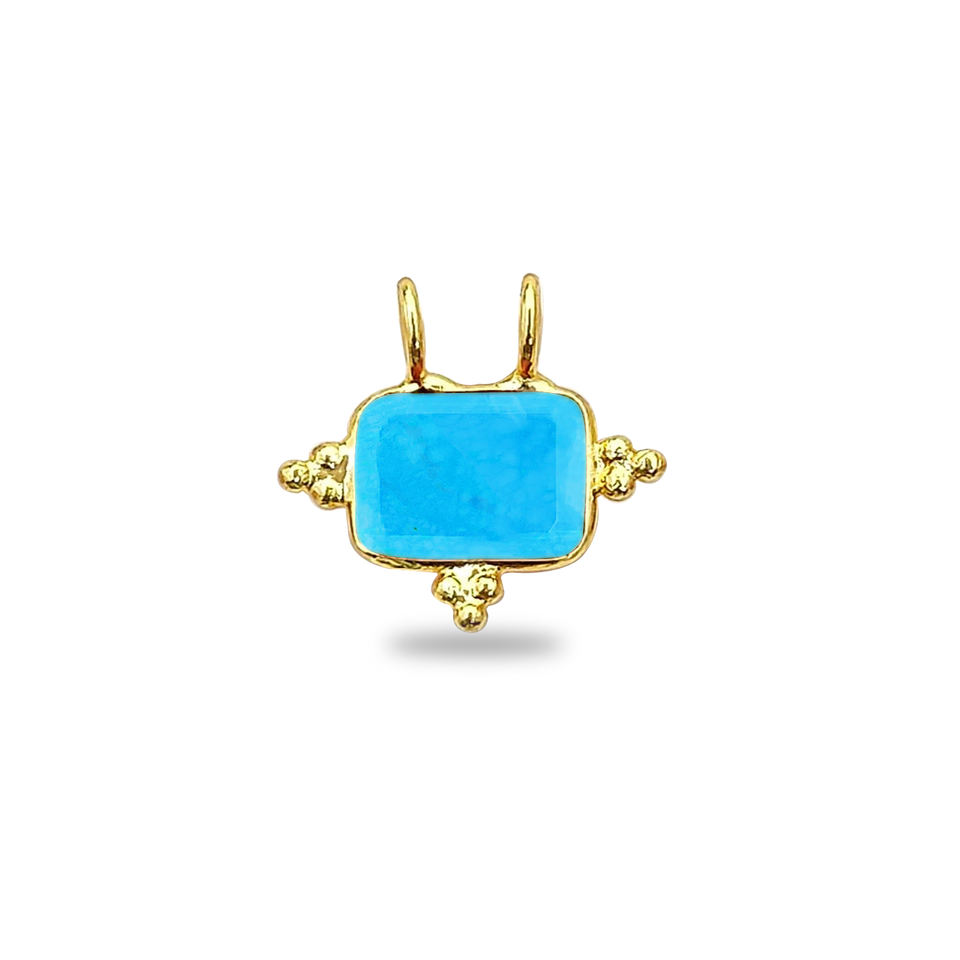 Turquoise Rectangle Fancy Bezel Charm Handmade Gold Plated Charms Birthstone Jewelry Blue Turquoise Jewelry Indian Suppliers