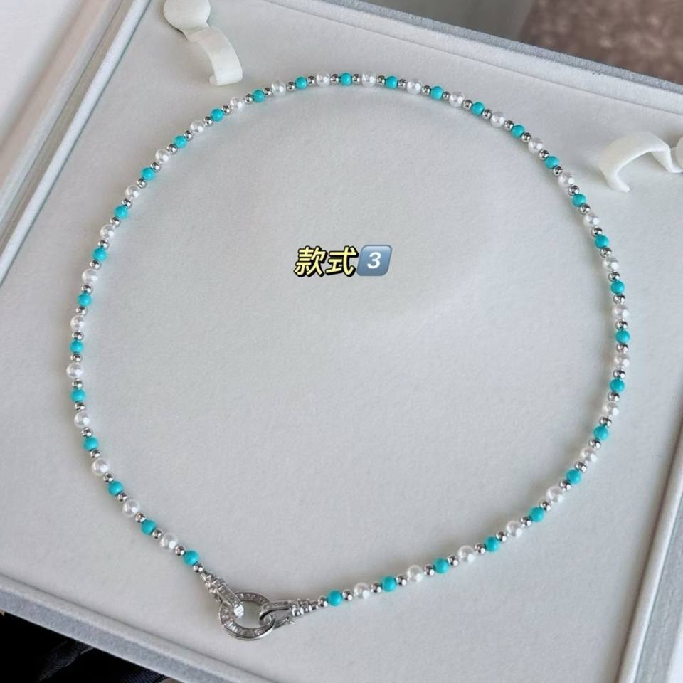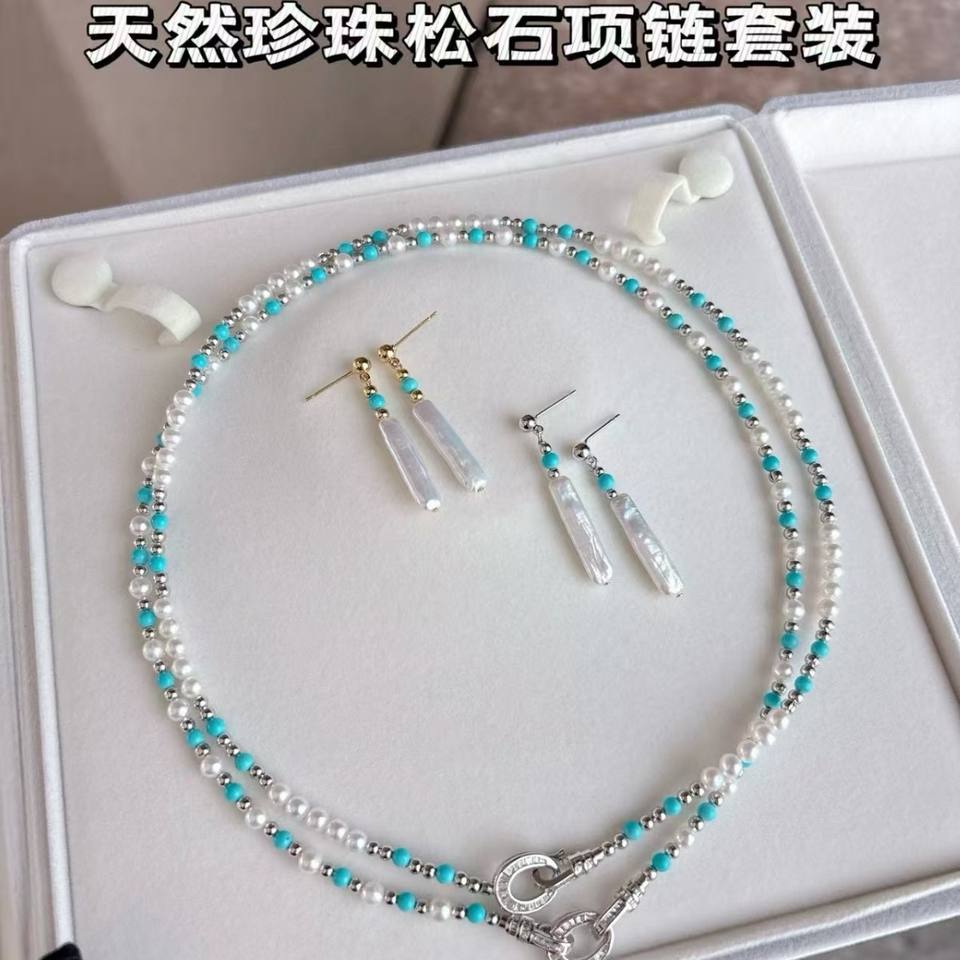 Collier de perles de riz turquoise pour femmes, barre argentée douce, extraterrestre avec verre arc-en-ciel, ensemble de bijoux fins en gros