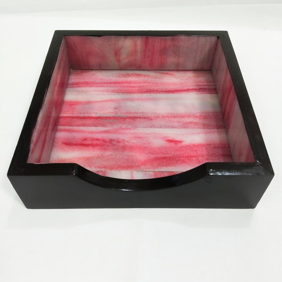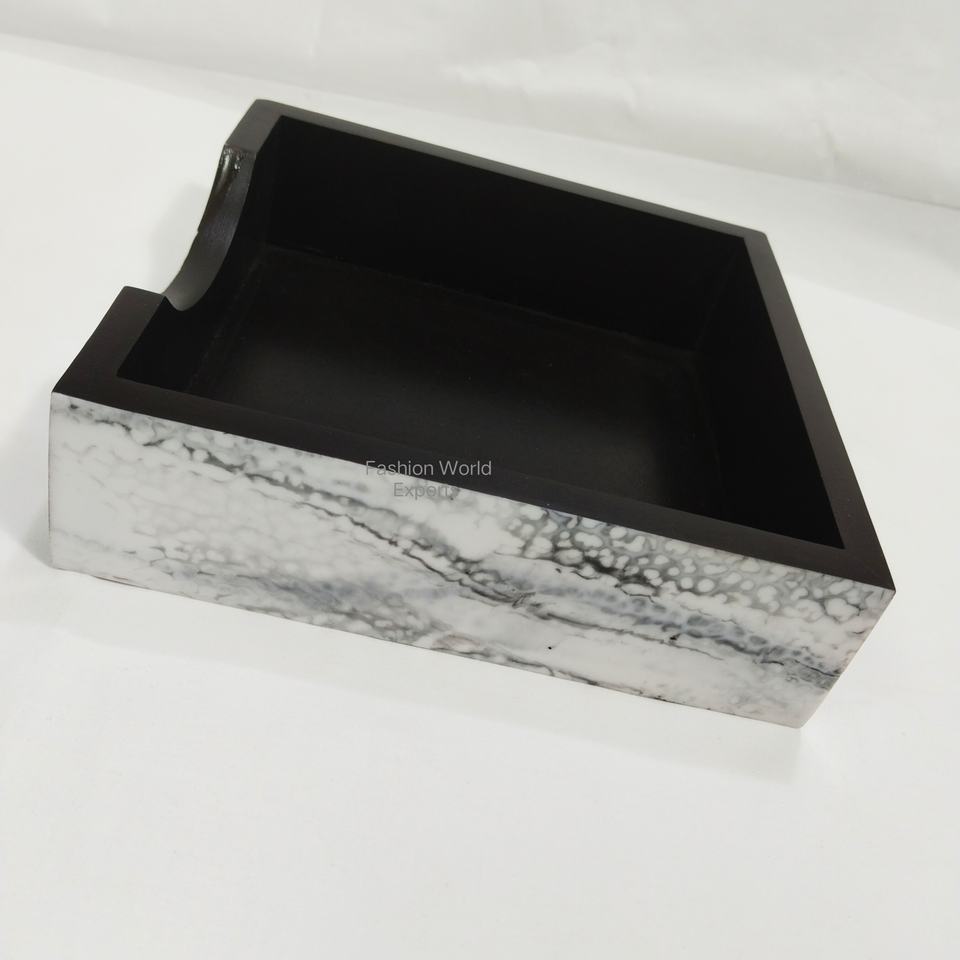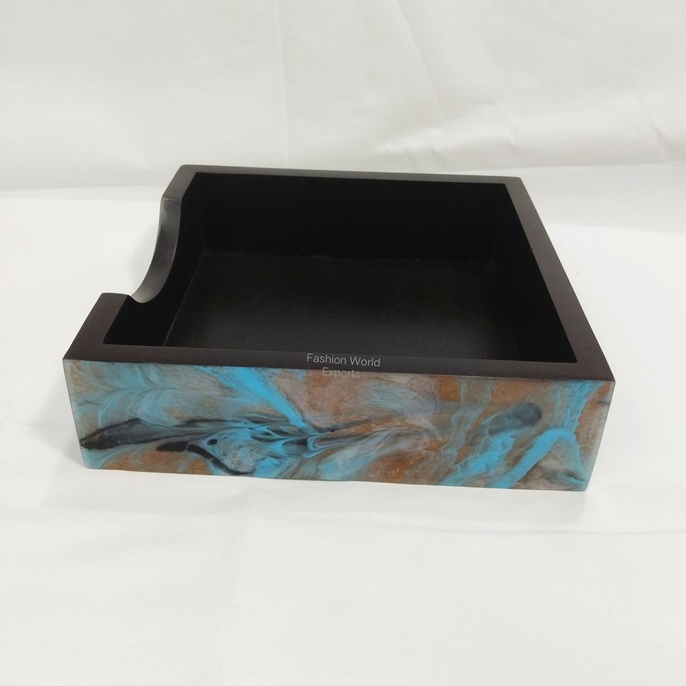 Boîte à mouchoirs carrée en résine turquoise et MDF, finition naturelle polie, artisanale, moderne et écologique pour salle à manger