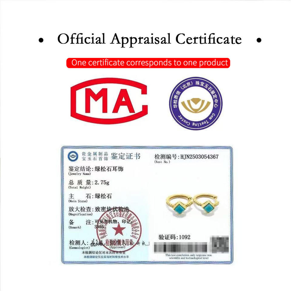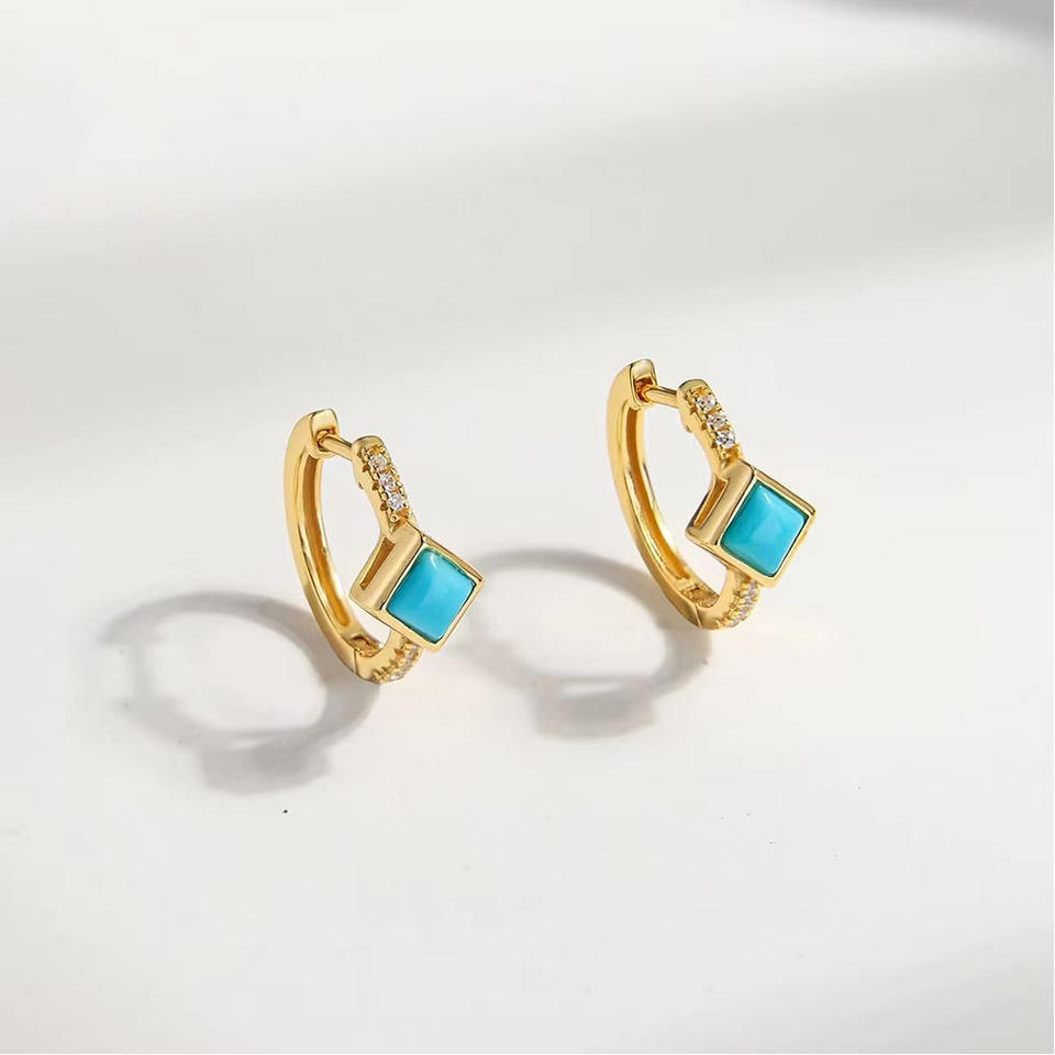 Boucles d'oreilles créoles carrées en argent sterling turquoise Plaqué or 18 carats Accessoire de mode géométrique de style classique