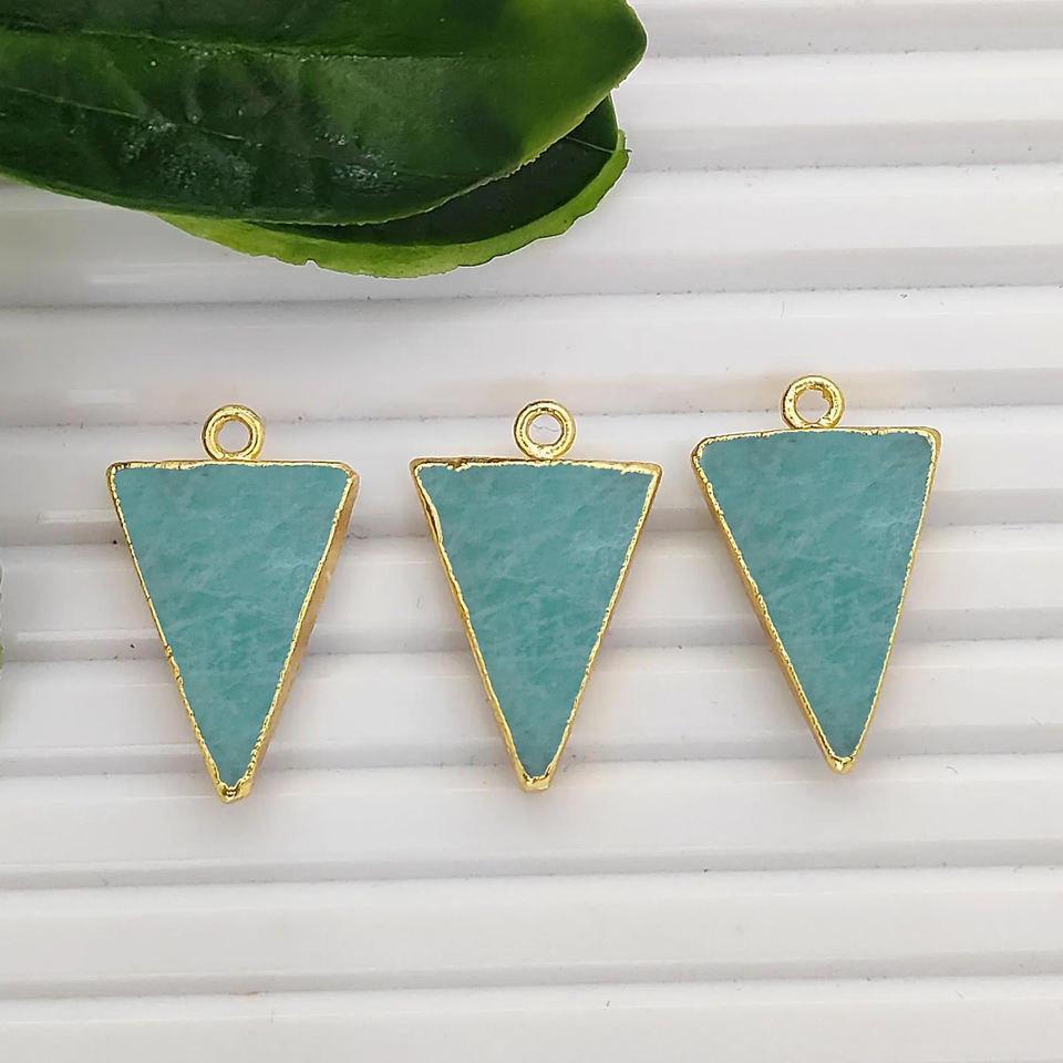 Pendentif en forme de triangle turquoise électroplaqué, turquoise naturelle 20x15mm, plaqué or, fait main, pour la fabrication de bijoux, connecteur en forme de tranche