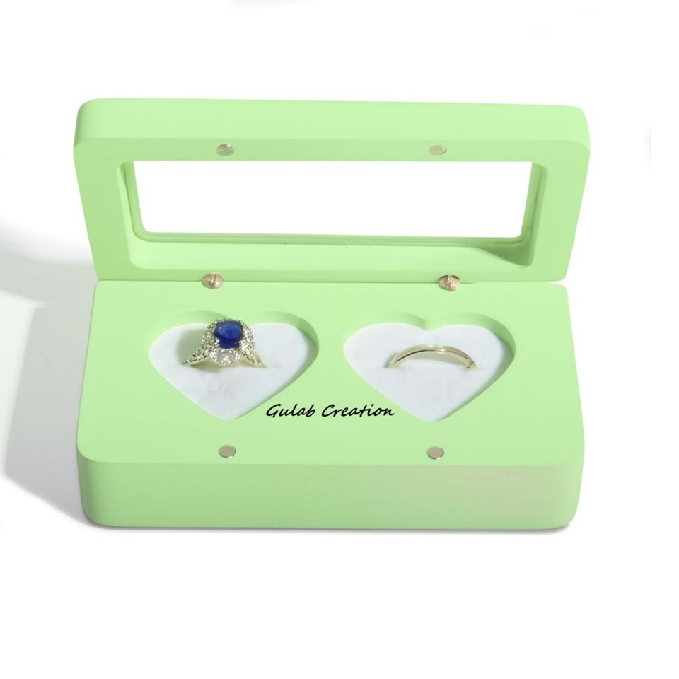 Boîte à alliances rectangulaire en bois turquoise, support pour deux alliances, pour mariages et cérémonies de fiançailles, artisanale