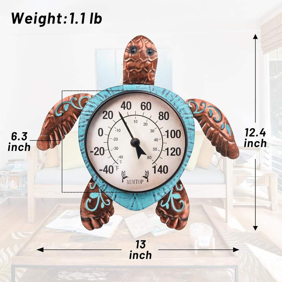 Thermomètre mural extérieur Turtle pour patio, cour, jardin - Article ménager