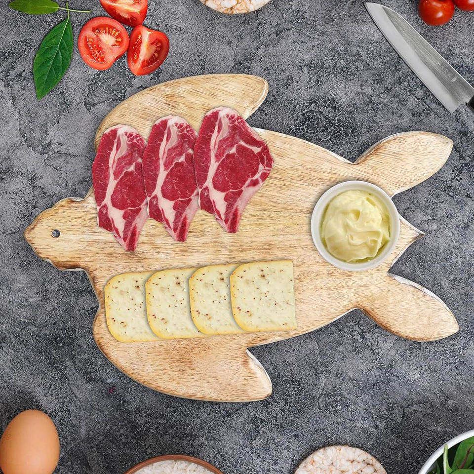 Planche à découper en bois en forme de tortue pour la viande, le fromage et le pain, outil de cuisine à prix de gros avec de faibles quantité minimale de commande disponibles.