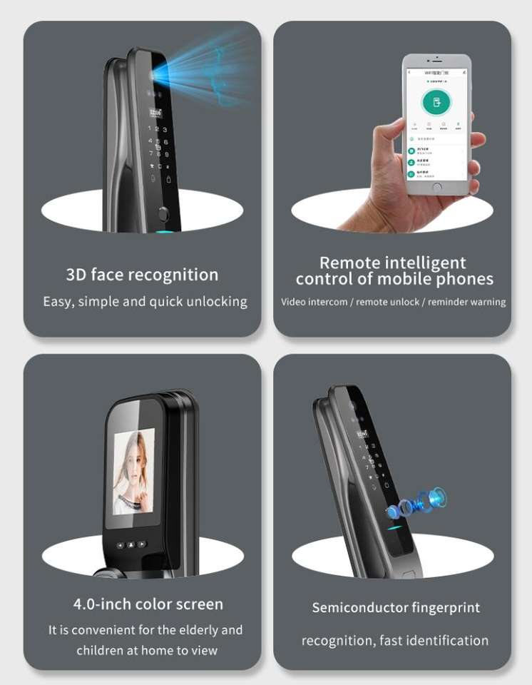 Serrure de Porte Intelligente Entièrement Automatique Tuya avec Reconnaissance Faciale 3D et Empreinte Digitale pour la Sécurité des Portes en Aluminium et en Bois Connectée au Wifi