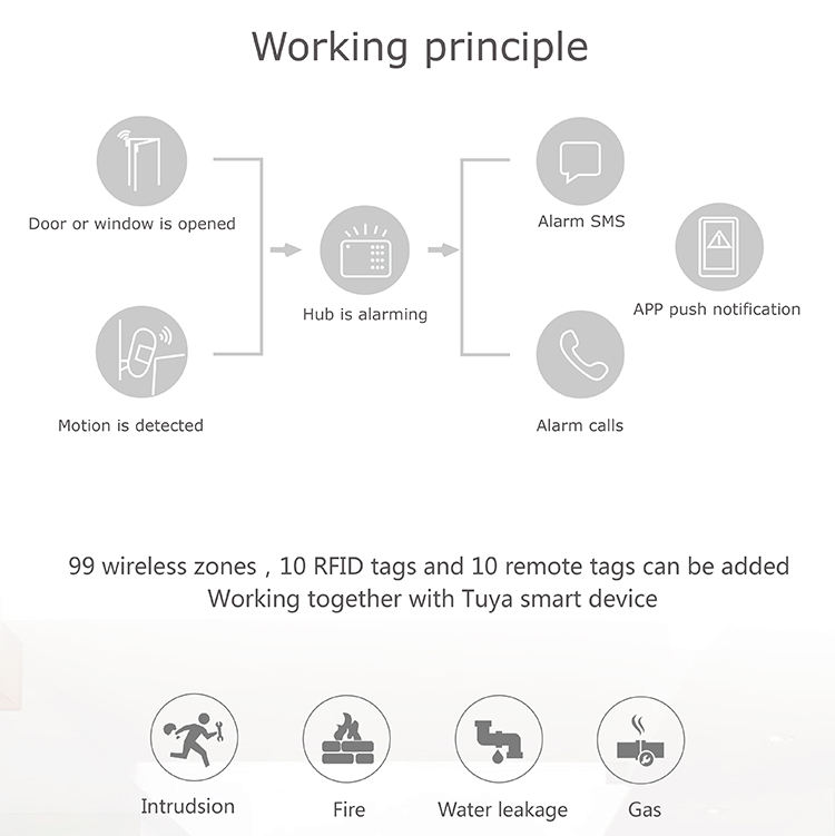 Kit système d'alarme de sécurité sans fil, wi-fi, GSM, Tuya Smart Life, contrôle avec application
