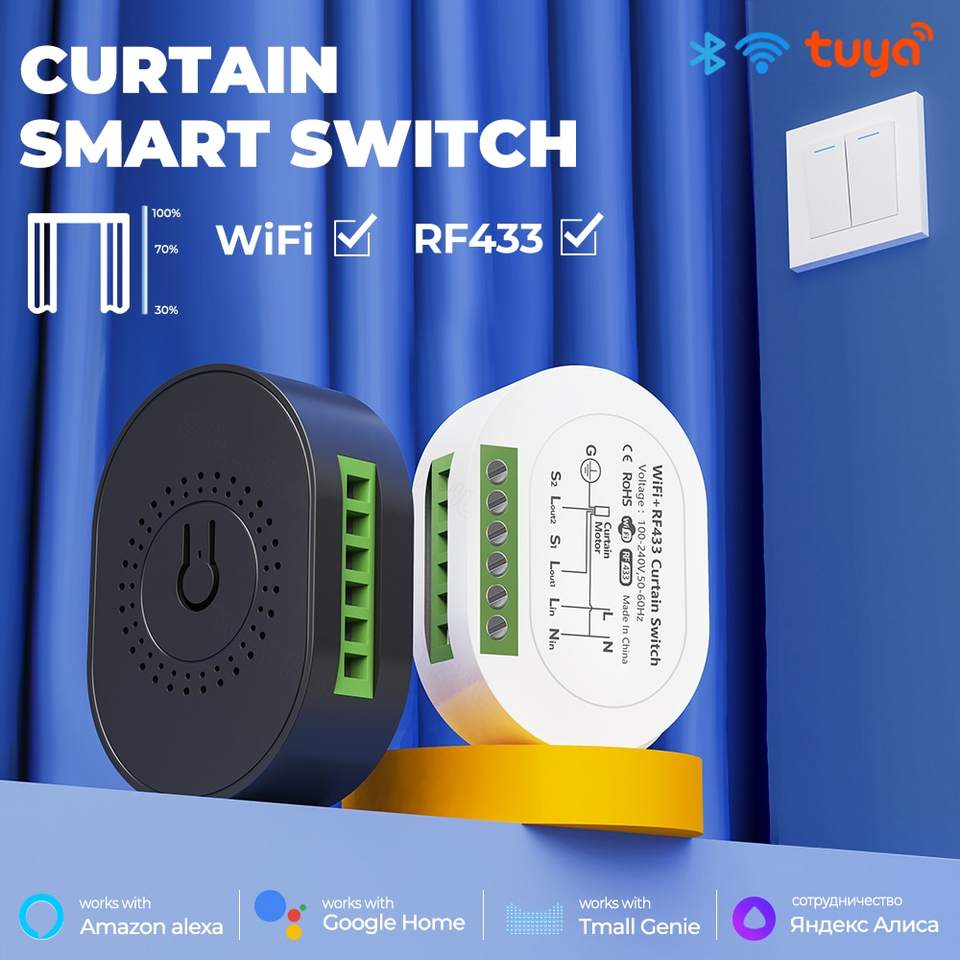 Interrupteur intelligent pour rideaux et volets roulants Tuya Smart Life Mini WiFi RF433, compatible avec Google Home et Alexa
