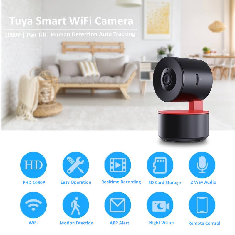 Caméra de surveillance intelligente Tuya hd p, dispositif de sécurité avec Audio bidirectionnel, connexion WIFI, suivi automatique et reconnaissance humaine