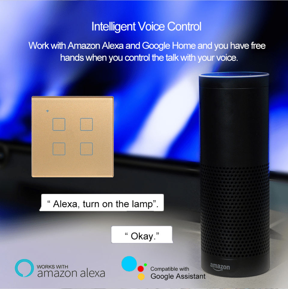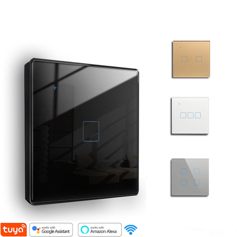 Interrupteur intelligent Tuya WiFi tactile mural, norme britannique et européenne, 1, 2, 3, 4 voies, 86*86mm, 220V, verre trempé, compatible Alexa, interrupteurs intelligents pour la maison