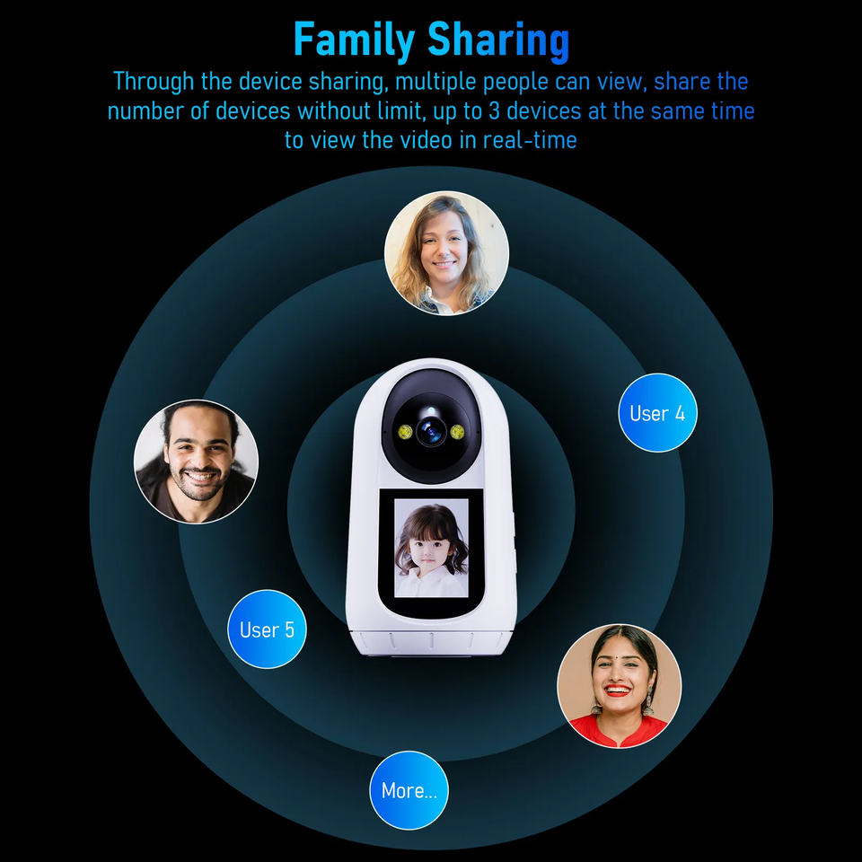 Vision nocturne, Détection de mouvement, Détection sonore, Built-in Sirène, PAN-TILT, Audio bidirectionnel, Audio à sens uniqueUsages spéciaux