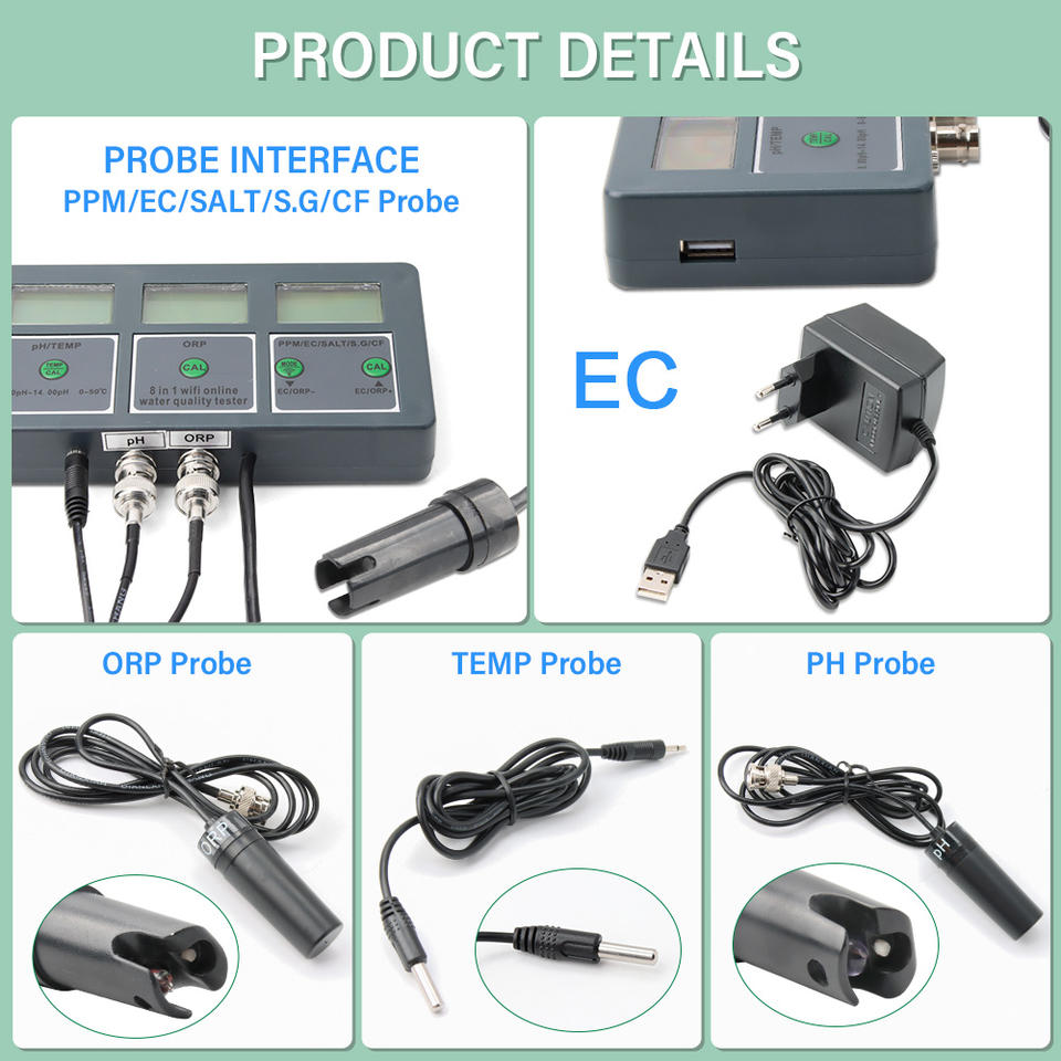Nom du produit:Testeur multi-paramètres PH/EC/TDS/ORP/SALT/S.G/CF/température