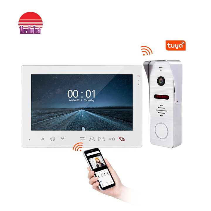 Sonnette vidéo WiFi Tuya, système d'interphone IP, construction métallique, écran LCD IPS 7 pouces, étanche IP65 pour l'accès aux appartements