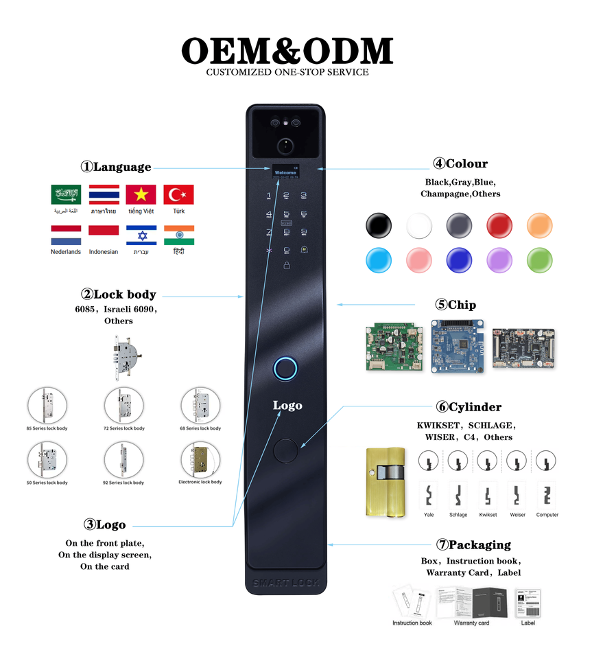 Carte, Empreinte digitale, Clé, Mot de passe, Reconnaissance des visages, Contrôle de l'application, Palm VeinMéthode de déverrouillage
