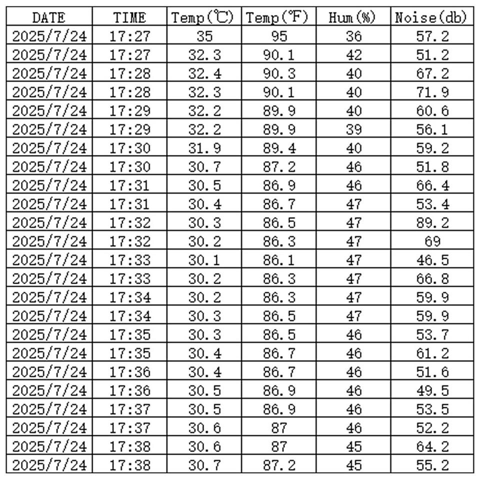 Éléments de test:Décibel, Température, Humidité, Temps