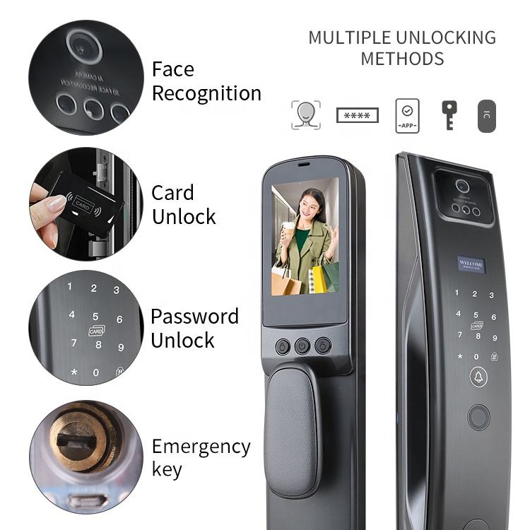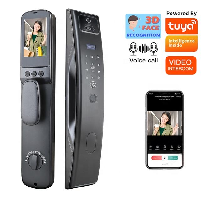 Tuya Wifi interphone vidéo numérique électrique biométrique empreinte digitale 3D reconnaissance de visage serrure de caméra de porte intelligente pour porte porte en bois