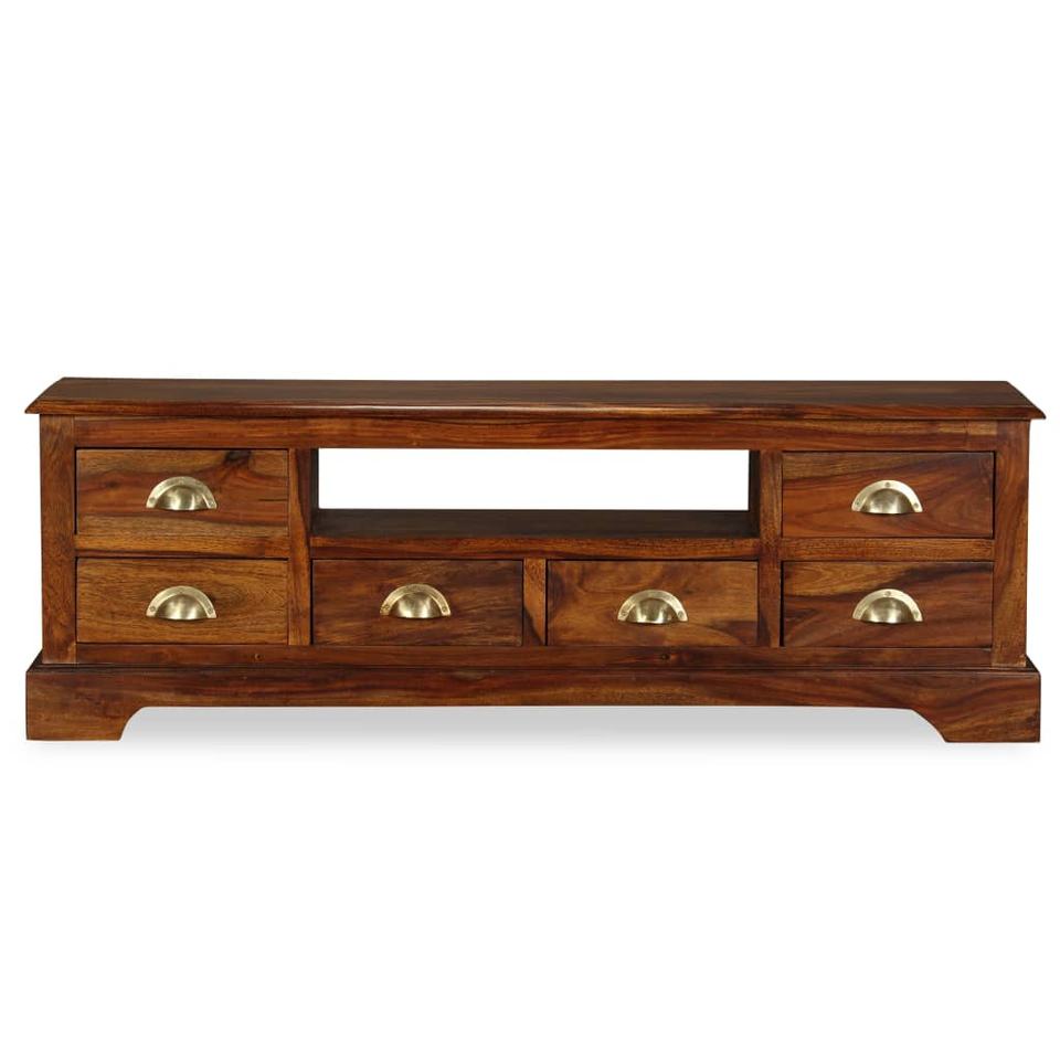 Meuble TV en teck massif avec fonction de rangement, design moderne pour salon et chambre, tailles personnalisées, couleur naturelle, compatible avec les téléviseurs de 65 pouces et plus