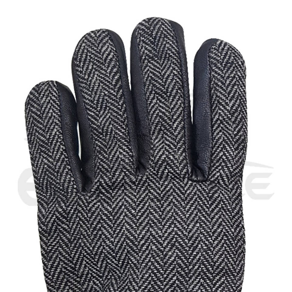 Gants d'hiver en laine tweed, cuir de qualité supérieure, par temps extrêmement froid, fabricant en gros OEM, gants d'hiver noirs pour hommes