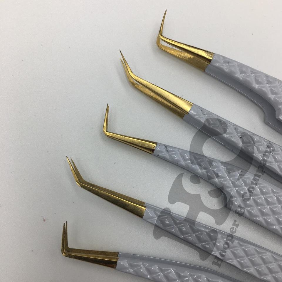 Pince à épiler Logo personnalisé Extension de cils en or Pince à épiler en acier inoxydable Outil personnalisé pour les extensions de volume de cils Pointe inclinée vison