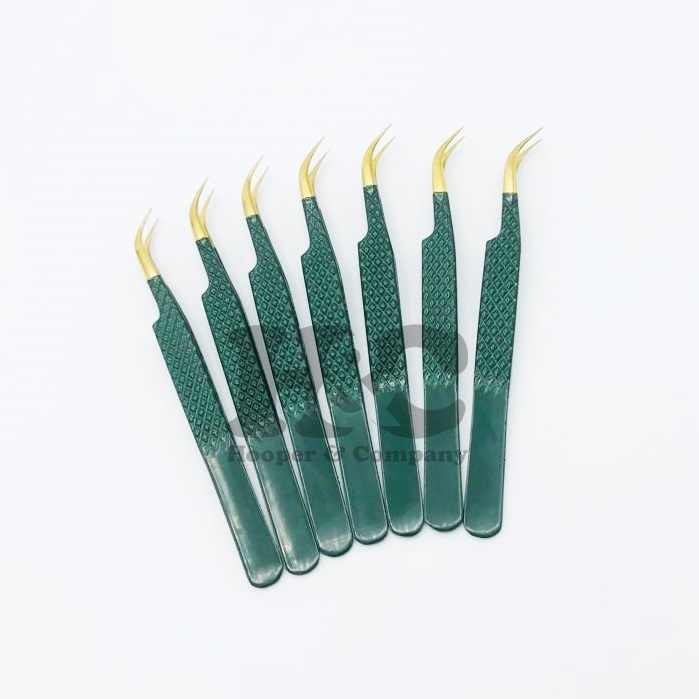 Pince à épiler J forme incurvée pince à épiler d'isolation Dard vert vison Extension de cils pince à épiler durable Logo testé
