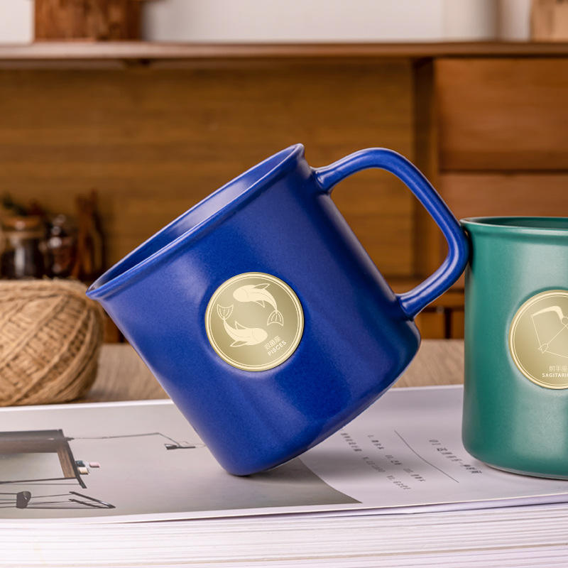 Tasse à café en céramique avec les 12 signes du zodiaque, 420 ml, avec poignée, résistance aux hautes températures, cadeau d'affaires, logo personnalisable