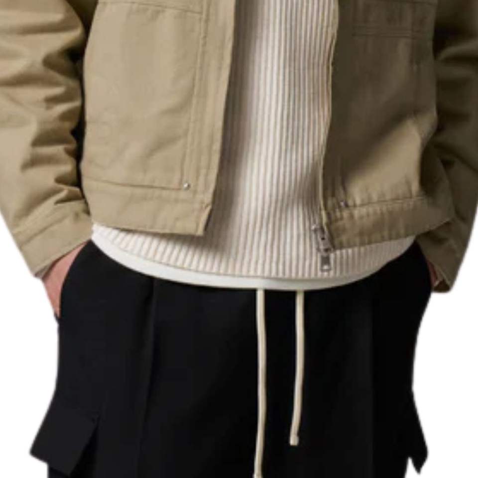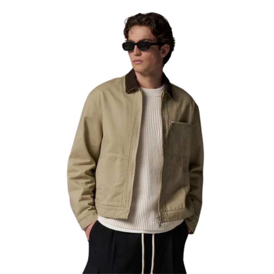 Veste en twill à col contrastant pour homme et femme en beige avec design élégant, fermeture éclair, tissu de haute qualité et coupe confortable