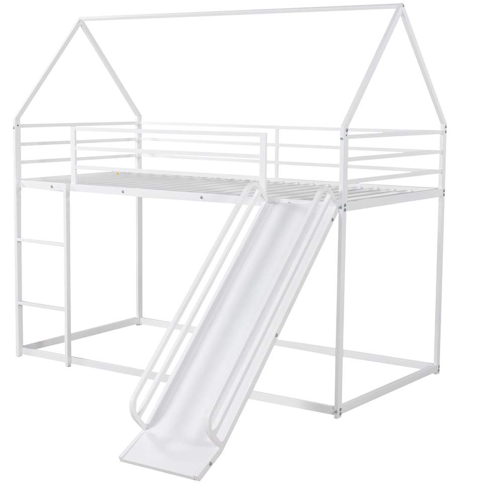 Twin Over Twin House Bunk Bed with Ladder and Slide Kids' Beds Product
