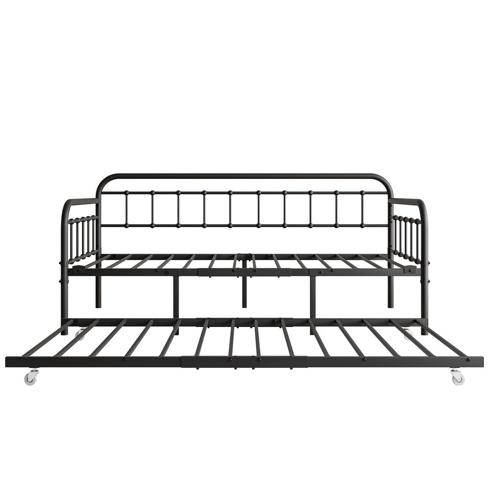 Lit de repos moderne en métal taille double avec sommier à lattes en acier robuste, plateforme de canapé-lit et tête de lit, aucun sommier à ressorts requis