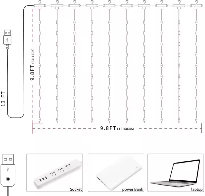 Guirlande lumineuse LED Twinkle Star 3M 2M 1M pour fenêtre, USB, lumières féériques avec télécommande 8 modes, crochets pour décoration de Noël et du Nouvel An