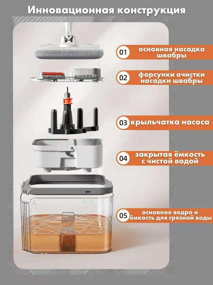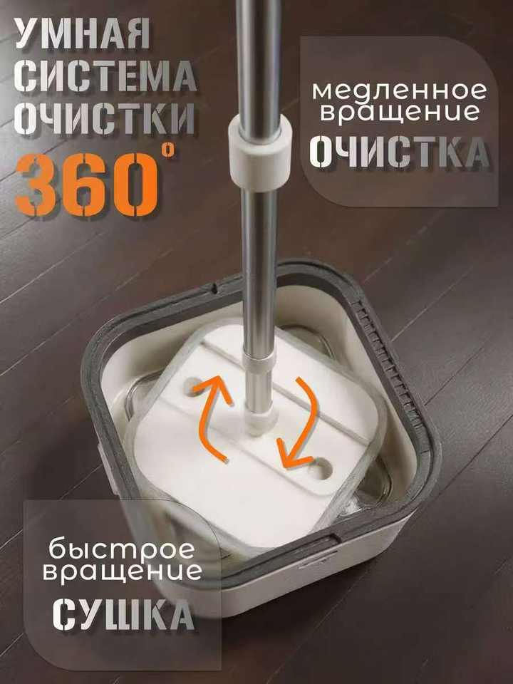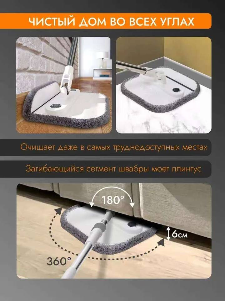 Serpillère rotative à 360 degrés avec système d'essorage et serpillère pliable, tampon en microfibre, conçue pour le marché russe.