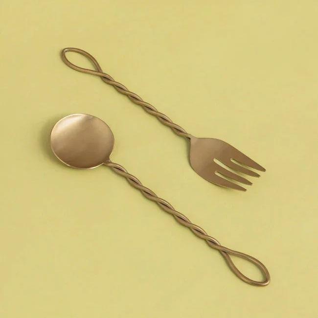 Ensemble de serveurs à salade en acier inoxydable torsadé pour un usage domestique, finition dorée brillante, ustensiles de service en métal pour l'inauguration de la maison et les cadeaux