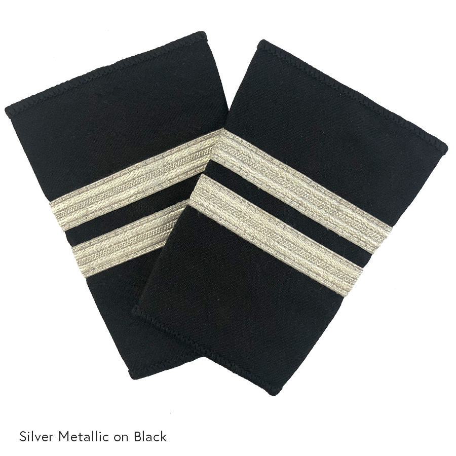 Épaulettes de pilote à deux barres - Premier modèle à épaule dénudée, 2 barres, tresse métallique argentée sur noir