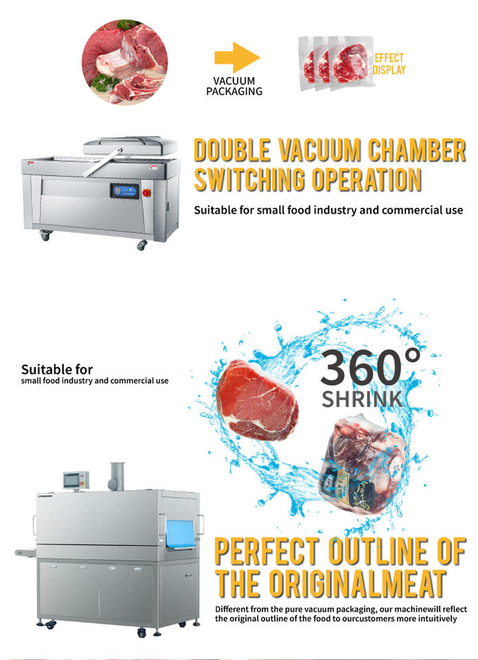 Nom du produit:Machine d'emballage sous vide à double chambre avec bain de rétraction à eau chaude